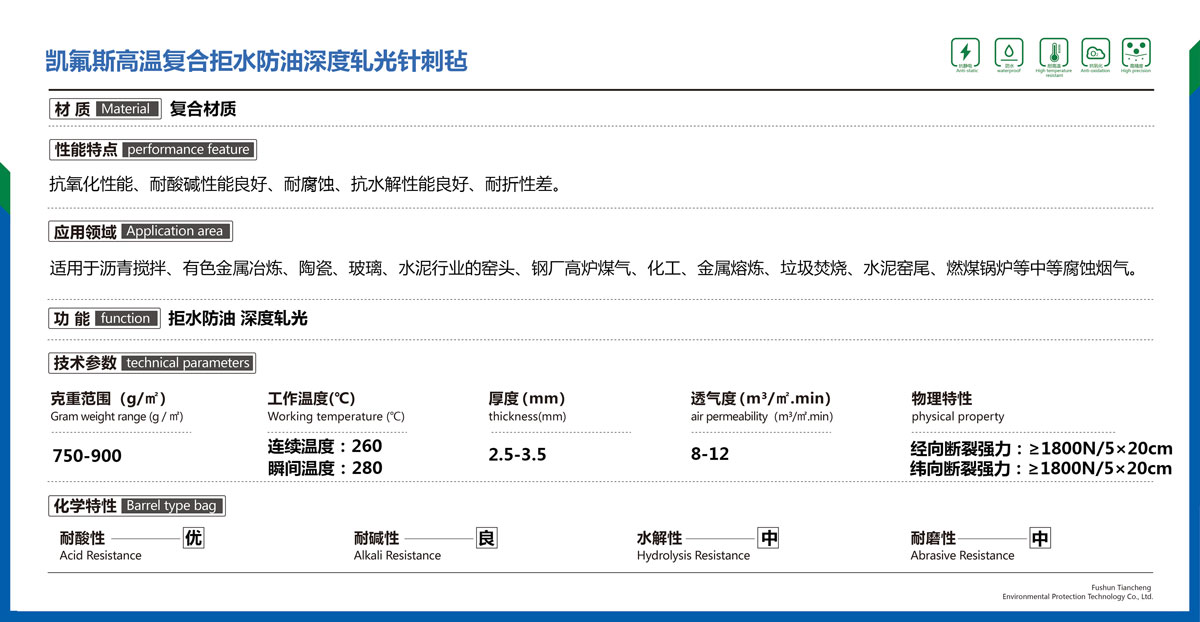 凯氟斯高温复合拒水防油深度轧光针刺毡